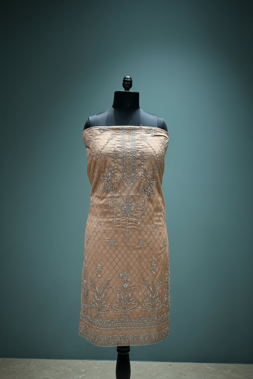 unstitched fabric featuring high-quality Pakistani lawn, known for its breathability and comfort. Its intricate embroidery design enhances aesthetic appeal, making it suitable for various occasions. The included dupatta provides versatility, allowing for customized styling options. Ideal for those seeking both elegance and practicality in their wardrobe.