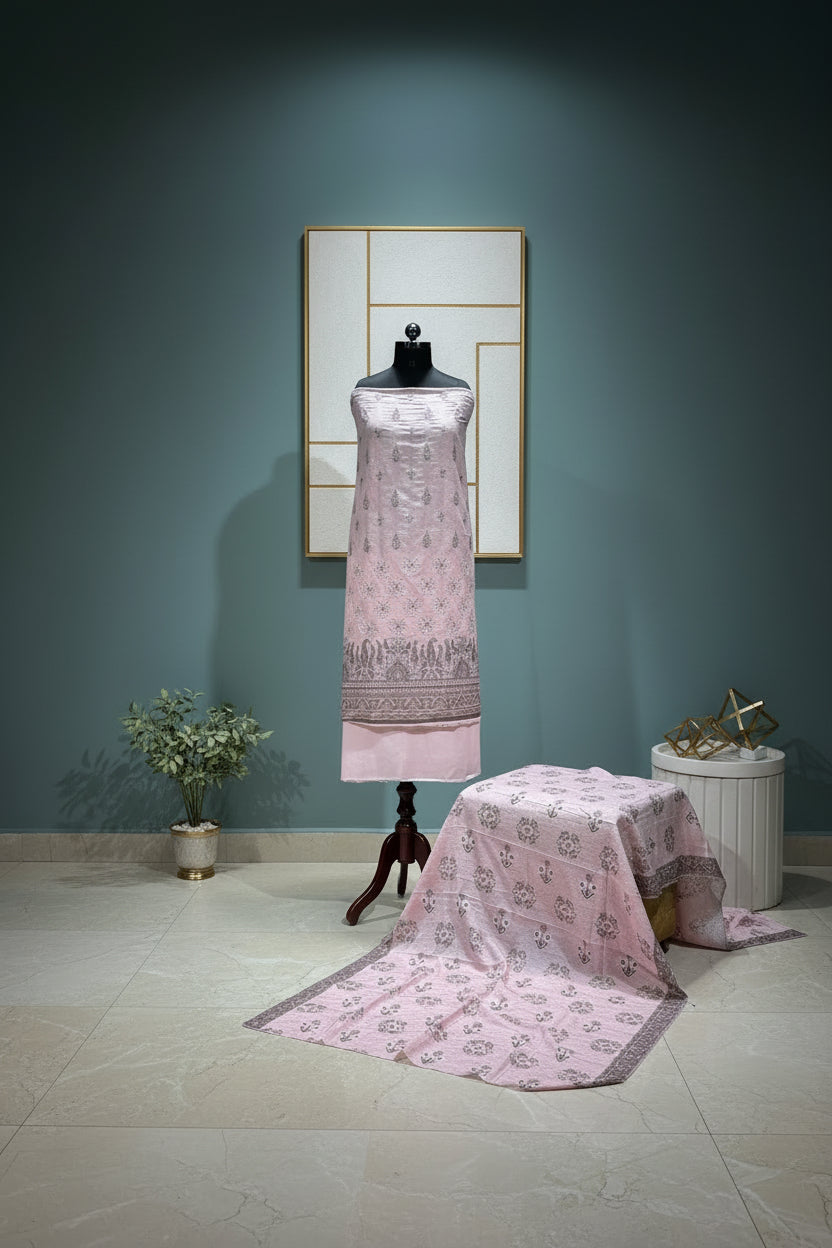 features a high-quality lawn fabric, renowned for its breathability and softness. It is adorned with intricate Pakistani embroidery prints, reflecting cultural artistry. The unstitched material allows for customization, while the accompanying dupatta enhances versatility in styling. Ideal for various occasions, it combines tradition with modern comfort.